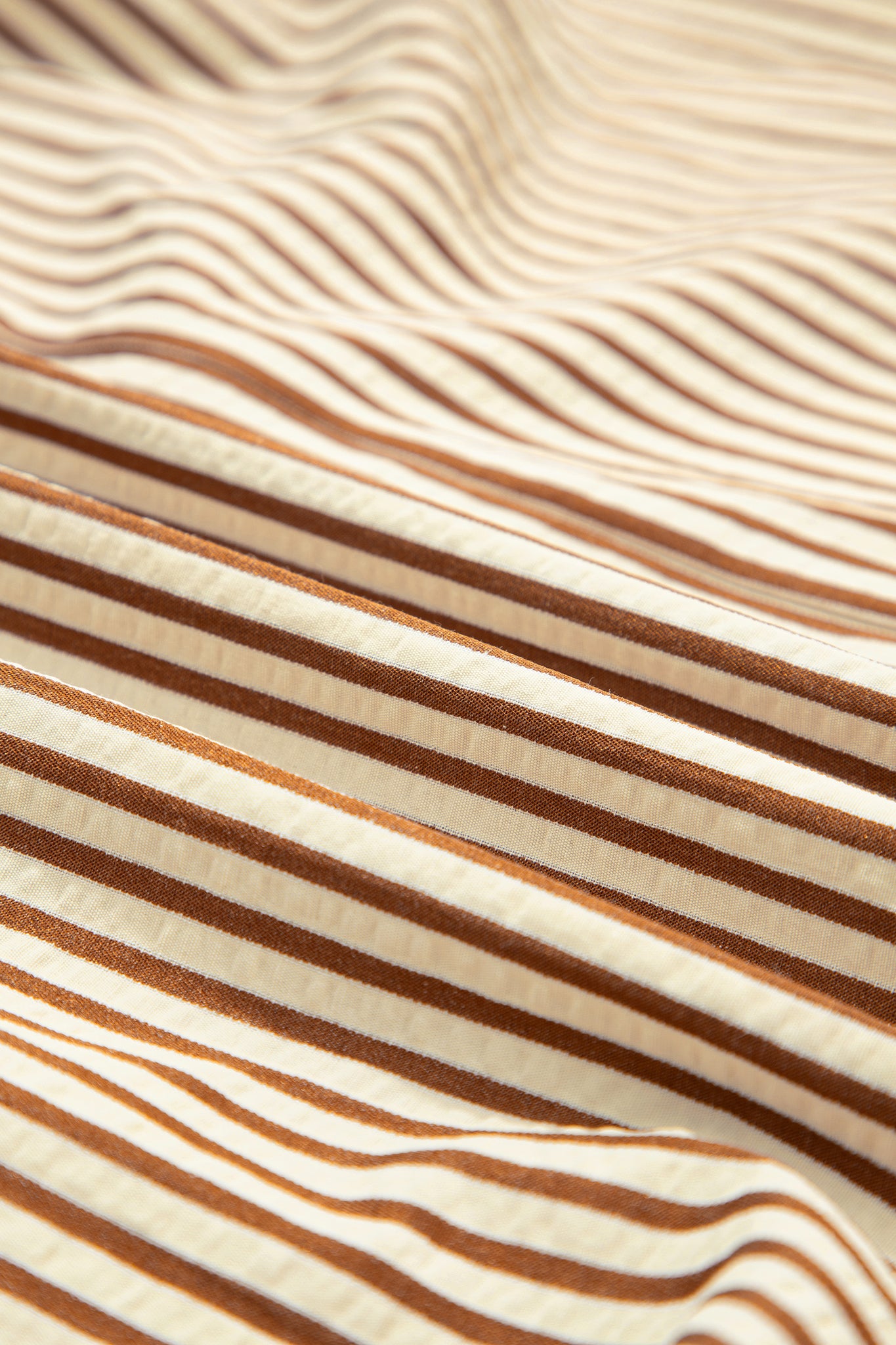 - Striped midi dress with double ruffled sleeves adds feminine charm to your look.